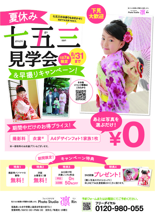_フォトスタジオ_成人式、七五三撮影、キッズ向け撮影イベント用のチラシ及びSNS広告データの撮影と制作。